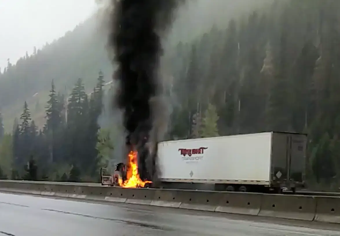 Former Merritt-area MLA Harry Lali sent brief video of the incident to CFJC Today. It shows the truck’s cab in flames with the trailer still attached.