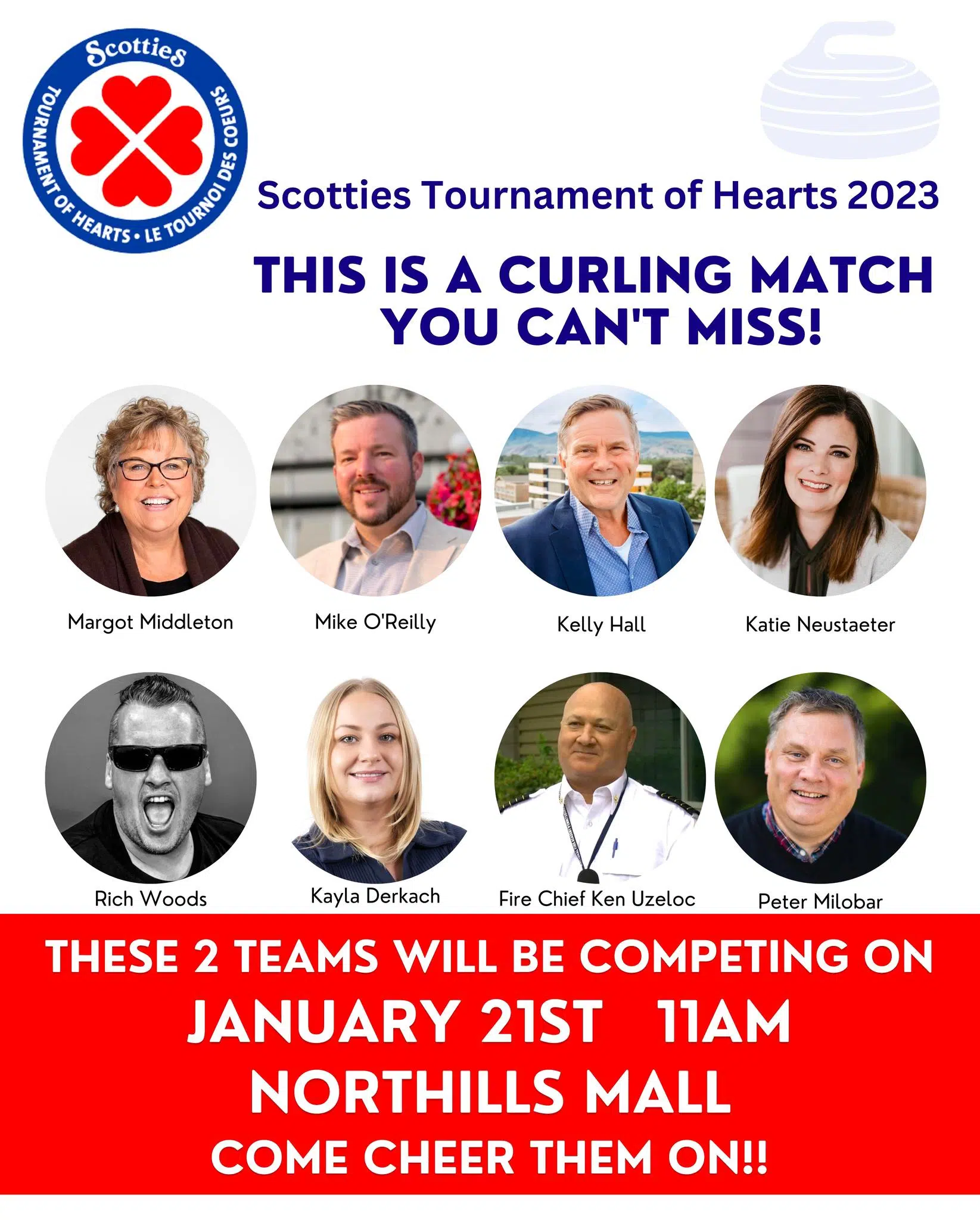We are so excited!! The NSBIA is holding a Curling match with the Scotties Tournament of Hearts! They have a huge curling rink they will be bringing over to the Northills Mall for the game! It will be on Jan 21st at 11am - however the teams will be there practicing about 10:30! Going to be SO much fun!!